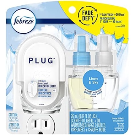 Febreze Odor-Eliminating Fade Defy PLUG Air Freshener, Linen & Sky, Starter Kit