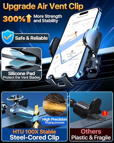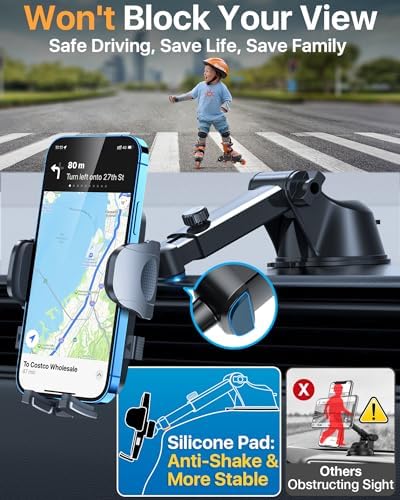 🎄🎄🎁【Widely Compatibility and Big Phones & Thick Case Friendly 】Adjustable foot, wider and deeper clamp arm ensure this phone holder in car is suitable for big phones and thick case. The phone car holder is compatible with iPhone15/iPhone15 Plus/iPhone15 pro/iPhone 15 pro max/iPhone14/iPhone14 Plus/iPhone14 pro/iPhone 14 pro max/ iPhone 13 pro max/ 13 pro/ 13/ 13 mini/ 12 pro max/ 12 pro/ 12/ 12 mini/ 11 pro max/ 11/ SE/XS/XR/XS Max/X/SE/ Samsung Galaxy S22/ S22 Ultra/ S22+ /S21…