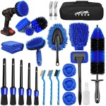 🚗【Professional 26 Pcs-in-1 Car Cleaning Kit】 The complete and decent car detailing kit equipped with 5 * detailing brush set, 4 * drill brushes, 3 * wire brush, 2 * vent cleaning brush, 1 * wheel brush, 1 * tire brush, 1 * detachable handle, 4 * of strong water absorption cloth cover and a 100ml spray bottle, 1 * dash duster brush, 1 * towel, 1 * car wash mitt, 1 * storage bag. Excellent completion of all works required for external and internal details! A gift for car buffs.