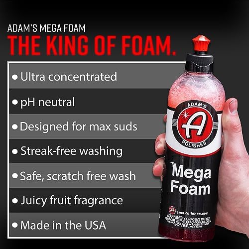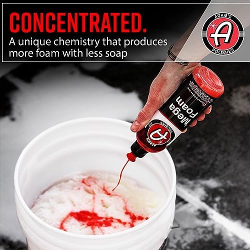 ✅ CREATES A HUGE AMOUNT OF THICK, LUBRICATING SUDS SUDS SUDS – Adam’s Mega Foam Shampoo is designed for your foam gun or foam cannon providing the maximum amount of suds necessary to clean your vehicle without the chance of inducing scratches! With 10-times the normal concentration of standard soap formulas, Mega Foam provides the most chemically advanced foaming capability for your routine washes.