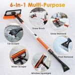 Easy to Store and Space-Saving: The ice scrapers for car windshields can be easily detached into 3 parts- squeegee/bristle head snow brush (180-degree pivoting), ice scraper, and telescoping extender. it can be kept in the car and only occupies a small space.