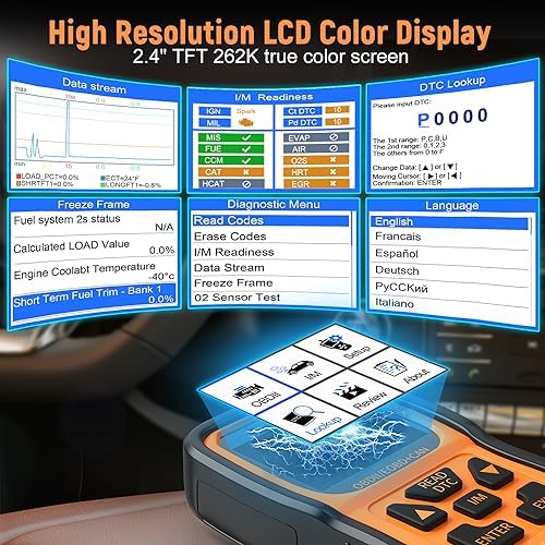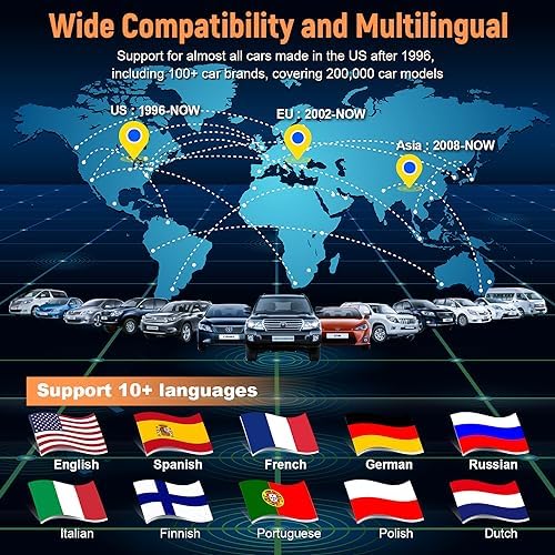 🚕➤【STRONG COMPATIBILITY AND MULTIPLE LANGUAGES】 Work on all after 1996 and newer vehicle models in the USA(OBD II&CAN) or other imported vehicles. Quickly read and erase the DTC on all OBD II protocols vehicles: CAN, J1850 PWM, J1850 VPW, ISO9141 and KWP2000 and support for 10 languages: English, French, Spanish, German, Russian, Italian, Finnish, Portuguese, Polish, Dutch, which make it easy to use for people from different countries.