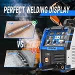 Lift TIG/ARC Welding: Lift TIG available,TIG Torch fits WP17V, not included in the package.TIG Welding thickness 1.0MM-8.0MM, Suitable for thin work-pieces such as stainless steel, alloy steel, carbon steel etc.Arc Welding fits rods E6013.