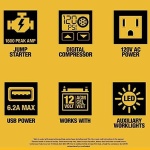 Gain an all-in-one power station ideal for camping trips, tailgating, and roadside emergencies; Includes a 120 PSI digital compressor, 500 watt AC inverter, USB power and an ultra-bright LED work light.Frequency : 60 Hz.
