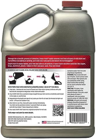 SAFE TO USE: This metal rust remover is made of a non-toxic and water-based solution that is easy-to-use on automotive, household and industrial-grade metal parts. It contains no harmful acids, solvents, bases, odors or fumes.