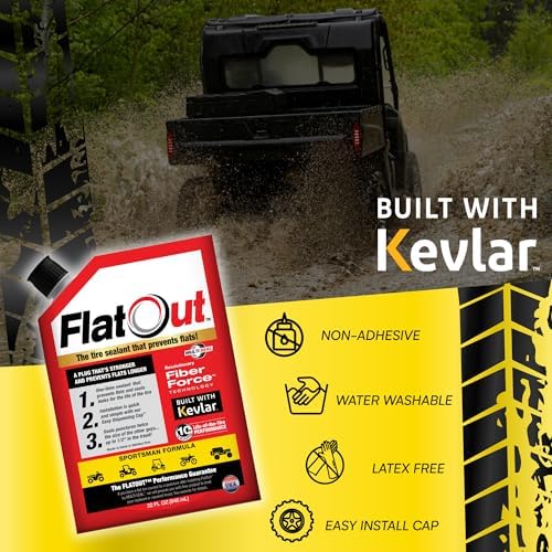 CONTAINS SUPER-STRONG KEVLAR: Containing super-strong Kevlar fibers FlatOut Tire Sealant Sportsman Formula is water-washable, non-toxic and latex/adhesive-free so there is never a sticky mess to clean up