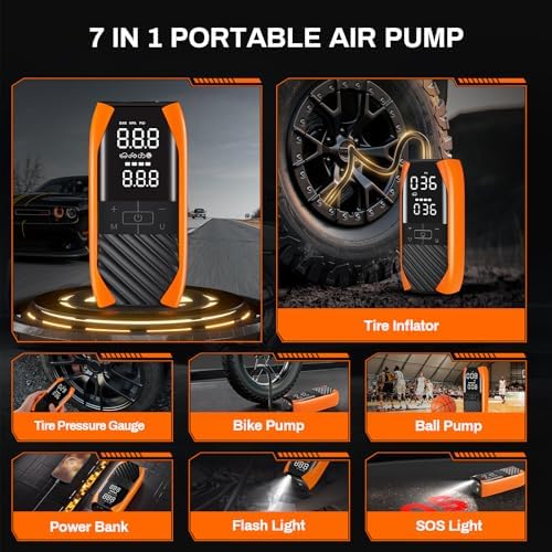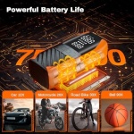 【Not Only A Tire Infator】- Not only can be used as a portable air pump for car tires(Motorcyle or bike pump/ball pump),it features high-brightness LED lights for night illumination and an SOS alarm for emergency situations. With 5V/2A USB output port on the top,making it a convenient power source for your phone or other digital devices. Its compact size ensures easy storage in your car, bicycle rack, or backpack, always within reach for your convenience. Perfect for everyday life, long journeys, and an ideal Christmas gift for friends and family.