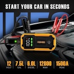 【Powerful Jump Starter 】-This 1500-Amp peak car jump starter can start a vehicle(Up to 7.5L Gas/ 6L Diesel Engine) in seconds.Suitable for car, truck, motorcycle, boat, RV or tractor and so on.All 12V vehicles can be started safely. Never worry about losing power on the road.