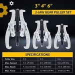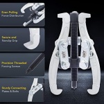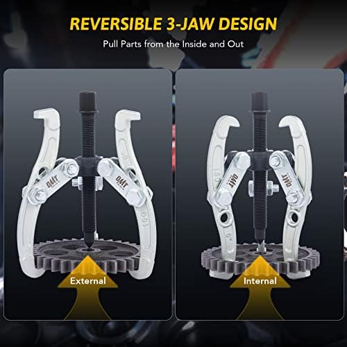 REVERSIBLE JAWS: Each pulley removal tool can be reversed to pull parts from either the inside or outside, with the 6″ gear puller provides 4 configurations for a sure grip thanks to its dual fixing holes