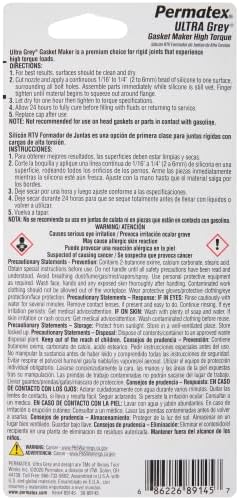 Vibration Resistant – Permatex Ultra Grey Offers Maximum Vibration Resistance, Withstanding High Torque Loads While Creating a Tough, Flexible, Silicone Rubber Gasket