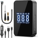 【Large Capacity and Long-lasting】 Equipped with a rechargeable 6000mAh battery, this air compressor can work for up to 40 minutes without an external power source. The charging cable is USB-C type, and it can be charged anytime during travel.