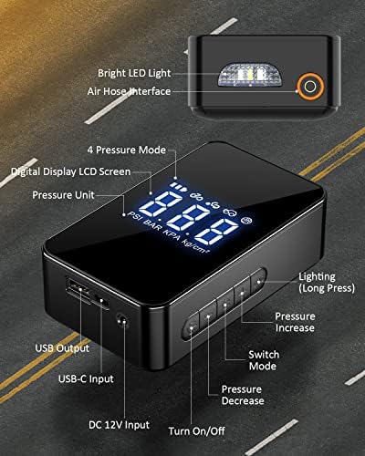 【More Than Just a Tire Inflator】The LED light makes it easy to inflate tires in the dark. There are three light modes to choose from, including white light, slow flashing red light, and fast flashing red light.
