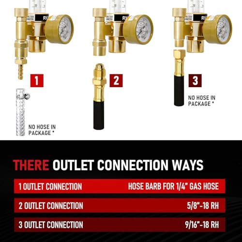 Package Includes:1 x Argon Regulator, 1 x 6.6Ft Hose, 1 x Hose Clamp and Mounting Nut. RX WELD has more complete accessories so you can use it with confidence!