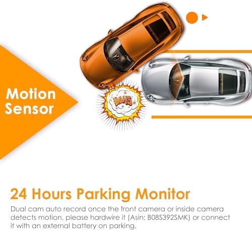 【24 hours Parking Mode & Audio Recording & Auto LCD OFF 】 Motion activated parking mode makes the dash cam for cars front and inside to auto record once the front or inside camera detects motion. Auto start and record when the ignition sparks up. Must be hardwired (Buy Separately, ASIN: B08S392SMK) or connected to an external battery before using parking mode. Auto LCD OFF timer ensure you won’t be disturbed by another glowing rectangle. Excellent audio recording with built in micphone.