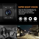 【Infrared Night Vision Interior Car Dash Camera for Drivers】Advanced sony sensor, F2.0 6-glass lens interior facing cam plus 4 IR LED lights greatly enhances night vision inside car at low light environment, making your driving more safer at night. F1.8 6-glass lens front facing cam and unique HDR video system automatically balance the light and dark areas of the video. Simply toggle the night vision modes by short pressing the power button of the car dash camera.